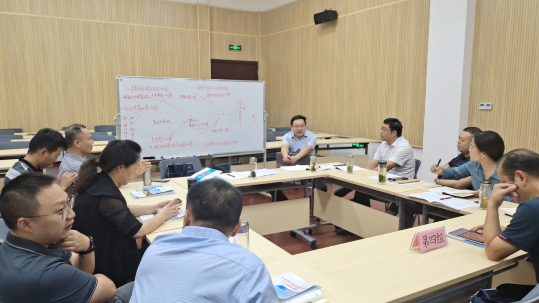骆光宗教授首先向学员讲授了结构化研讨的基本方法、原理等理论知识,并明确了本次结构化研讨主题。随后,全体学员分成4个小组,结合“加快建成武汉都市圈重要增长极的重难点问题”的课堂任务展开研讨。学员们充分运用课堂教学中所学知识,按照结构化研讨的组织程序及形式,围绕课堂任务,各抒己见、踊跃发言。各小组利用研讨分析工具,分别提出了经济体量不大不强、城市与产业双集中亟需加强、科技创新能力不足、城市建设欠账较多等影响建成武汉都市圈重要增长极的四个方面重难点问题,深入分析梳理30多条产生问题的原因,拟定了17条相关性强,可操作、可量化的对策措施建议。经过1个小时的激烈讨论和思想碰撞,各小组形成了最终研讨结果。