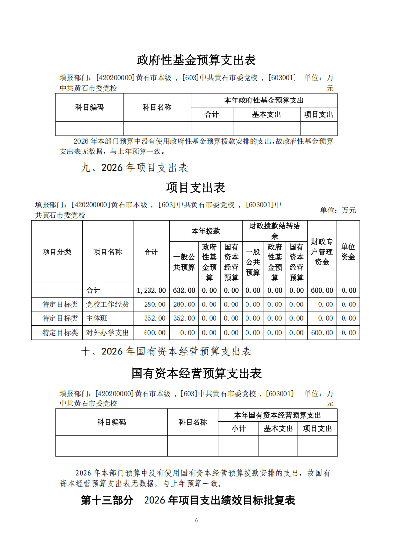 2026年度预算共安排项目支出1232万元,比上年增加12万元,增长0.98%,增加原因主要是:城区主体班经费上解,列入部门预算,主体班经费增加。主要包括:本年财政拨款安排632万元(其中,一般公共预算拨款安排632万元,政府性基金预算拨款安排0万元,国有资本经营预算拨款安排0万元),财政拨款结转结余安排0万元(其中,一般公共预算拨款安排0万元,政府性基金预算拨款安排0万元,国有资本经营预算拨款安排0万元),财政专户管理资金安排600万元和单位资金安排0万元。