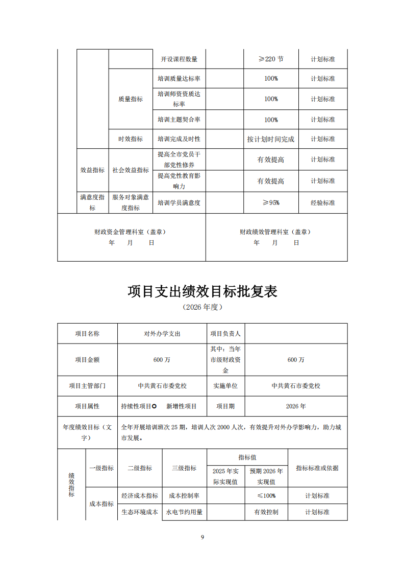 (7)2026年度项目绩效总目标是:全年开展培训班次25期,培训人次2000人次,有效提升对外办学影响力,助力城市发展。