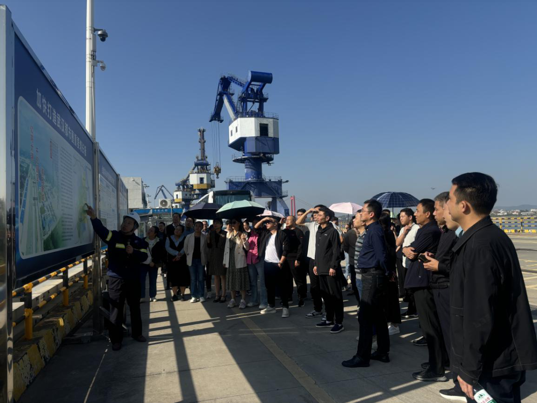 近年来,黄石新港紧扣“加快打造长江水铁联运重要节点、武汉都市圈东向开放桥头堡、黄石转型升级和高质量发展重要增长极”的目标定位,全力推进“亿吨大港、干亿园区、港口新城”建设。目前,一、二期15个泊位已建成投产,三期8个万吨泊位已于今年上半年建成运营,具备8000万吨、50万标箱通过能力,成为长江中游最大的单体港和枢纽港。在新港港口,码头上智能化设备正在进行货物作业,装卸设备高效运转。学员们边走边看、边听边问、边谈边想,详细了解了新港港口发展规划、项目建设进展、未来发展定位等情况,亲眼目睹了现代化港口的工作景象,感受到了黄石新港和城市发展的生机与魅力,探讨交流了当前多式联运发展中遇到的困难和问题,为课题研究收集了一线信息。
