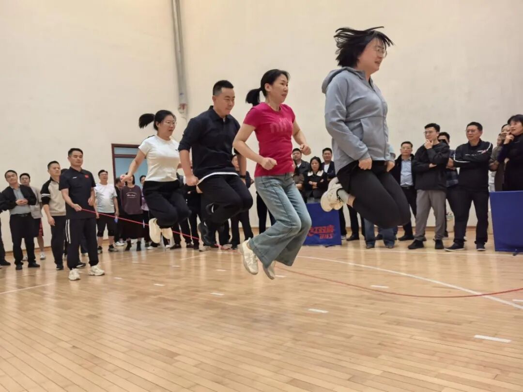 跳绳比赛是速度与激情的较量,更体现了团队协作的能力。需要运动员在规定的时间内同时完成更多的跳绳次数,他们跳动的节奏仿佛是党的心跳,坚定有力,充满活力。凭借默契的配合和快速的反应,优胜队伍逐渐拉开了与其他队伍的差距,大大增强了学员们之间团结互助的能力,展现了党的力量在团结中的体现。