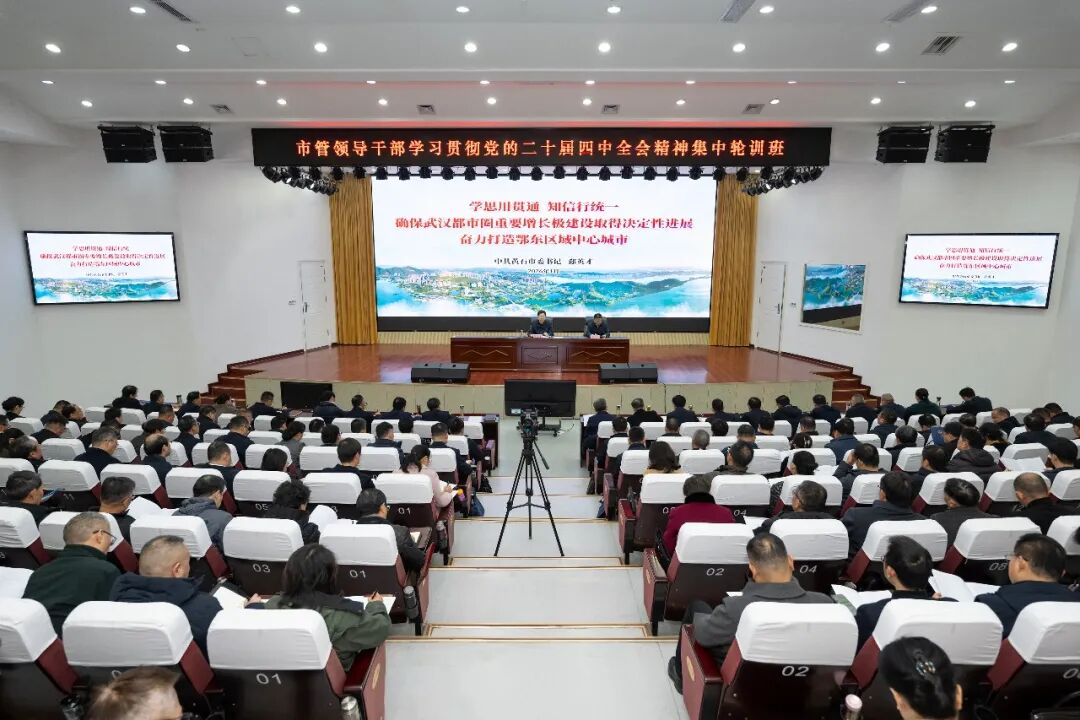 1月11日,全市市管领导干部学习贯彻党的二十届四中全会精神集中轮训班在市委党校开班。市委书记郄英才作开班动员和首场辅导报告。他强调,要学深悟透党的二十届四中全会精神和习近平总书记考察湖北重要讲话精神,全面落实省委、市委相关部署,鼓足干劲、奋发进取,久久为功、善作善成,持续奋进全省第一方阵,加快建设武汉都市圈重要增长极,奋力打造鄂东区域中心城市,为服务推动全省支点建设作出新的更大贡献。市委副书记、市长吴之凌主持开班仪式。