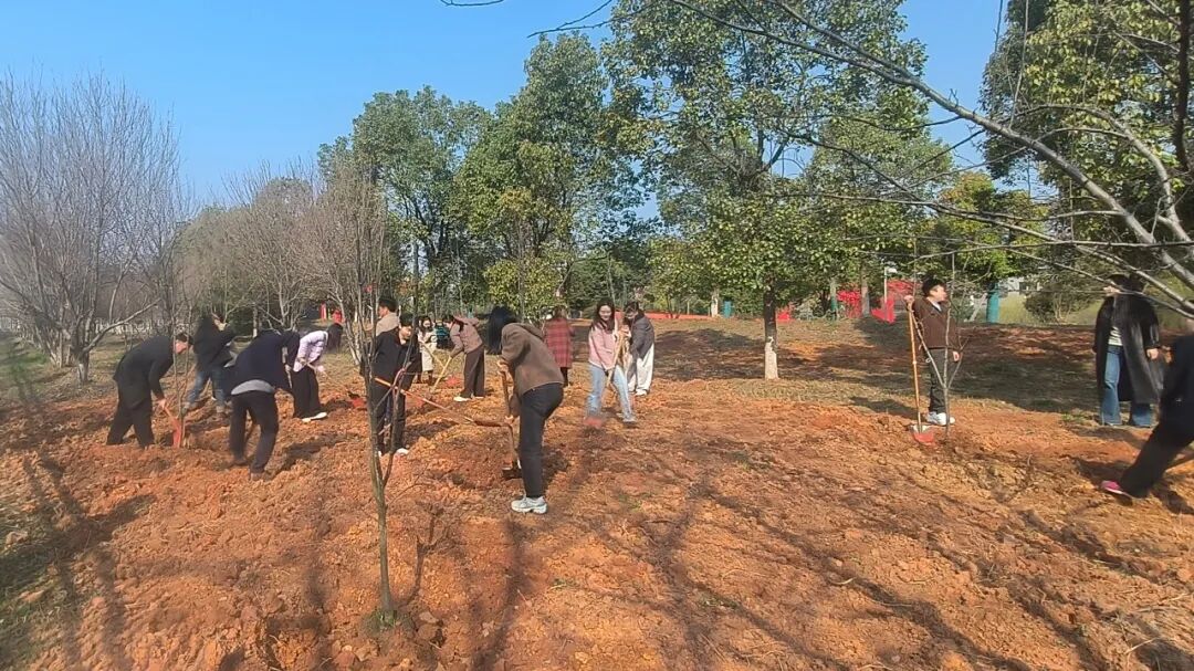 植树现场秩序井然、氛围热烈。大家分工协作、默契配合,挥锹铲土、扶苗填坑、踩实浇水,严格按照栽植技术标准规范操作,本次共种植梨树、红桔、桂花等苗木50株,我们用心栽好每一棵树苗,确保栽一株、活一株、成一景。