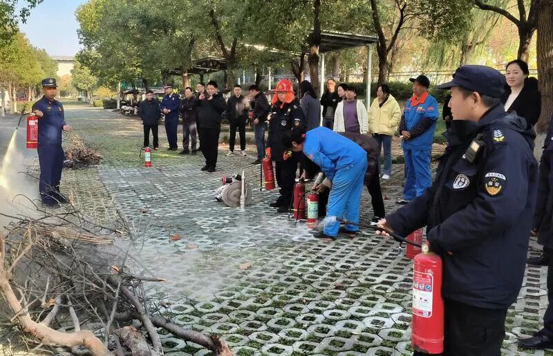 活动现场,消防救援大队指导员向在场人员讲授“一摇、二提、三拔、四瞄、五压”的消防灭火器实操口诀和应急逃生方法,大家逐一上场参与“灭火”操作以掌握要领,提升自防自救能力。