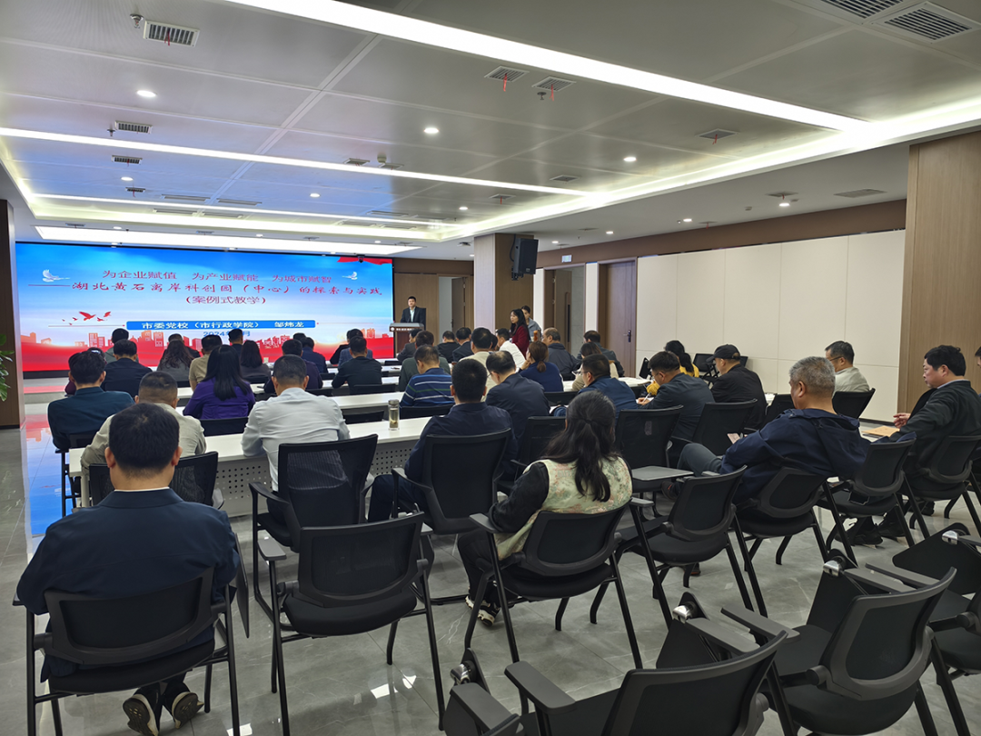 市委党校教师、省级精品课获得者邹炜龙以《为企业赋值为产业赋能为城市赋智——湖北黄石离岸科创园(中心)的探索与实践》为题,聚焦当前群众关注度较高的“科创飞地”问题,围绕“从黄石离岸科创园(中心)实践看,有哪些启示和经验”、“黄石发展离岸科创园(中心)运营和发展,面临哪些共性难题”、“如何高质量建设离岸科创园(中心),助力黄石打造武汉都市圈重要增长极”等问题进行讨论交流。通过这种沉浸式、体验式案例教学,充分调动了学员参加课堂讨论积极性和主动性。