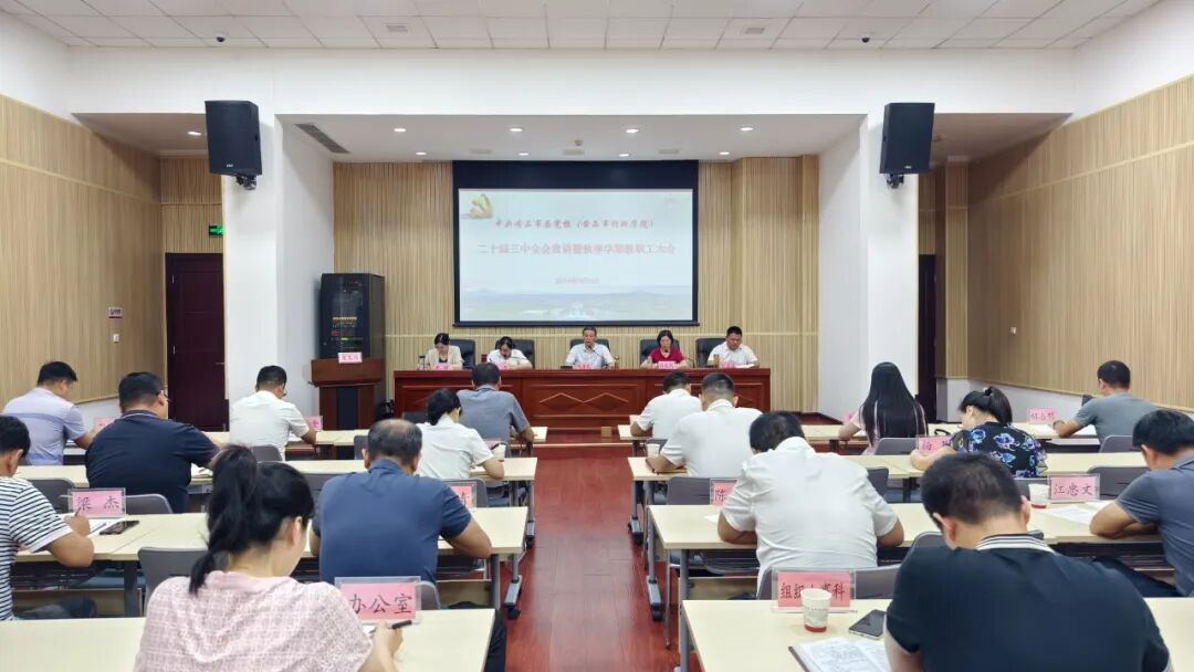 会议指出,全校教职工要深刻领悟党的二十届三中全会精神的重大意义,深刻领会进一步全面深化改革的重大原则和举措。要把学习宣传贯彻好党的二十届三中全会精神和省委十二届七次全会精神、市委十四届五次全会精神贯通起来,一体领悟。要主动对标对表,在进一步全面深化改革中发挥好党校作用,在学习宣传阐释全会精神上积极作为。要找准职责定位,以基本培训为抓手,在服务提高党员干部现代化建设能力上展现党校担当。