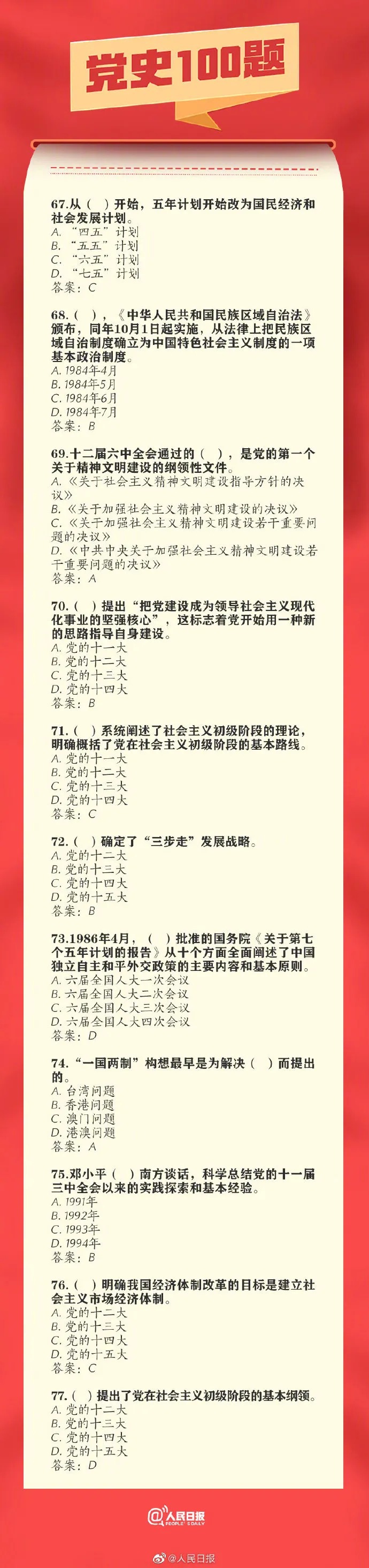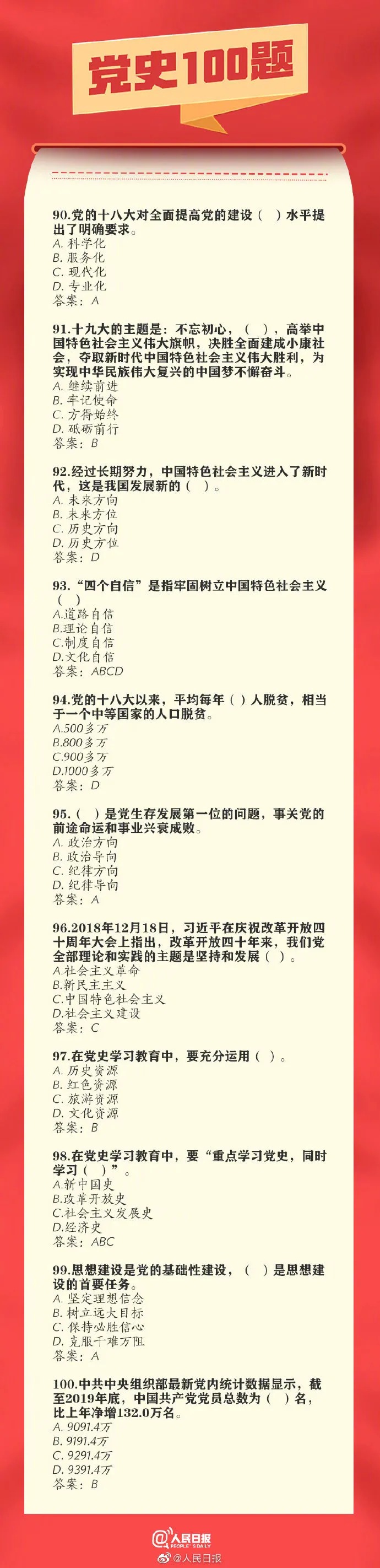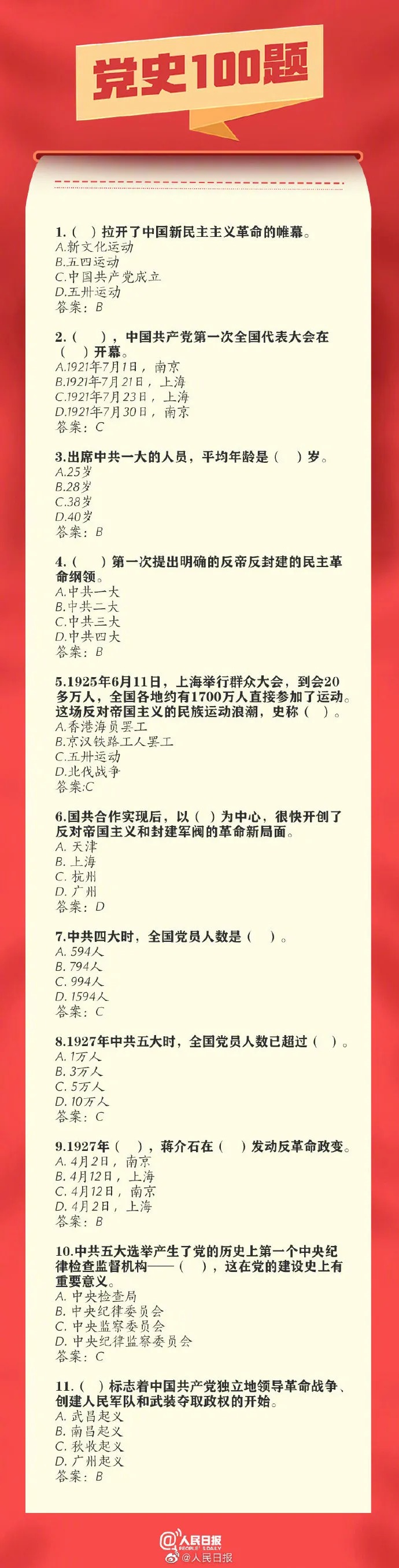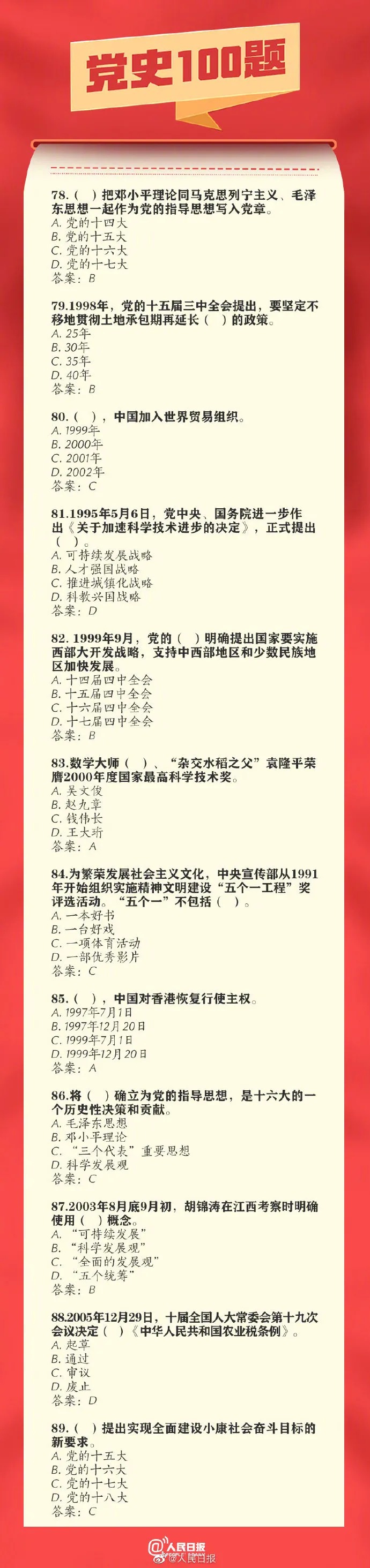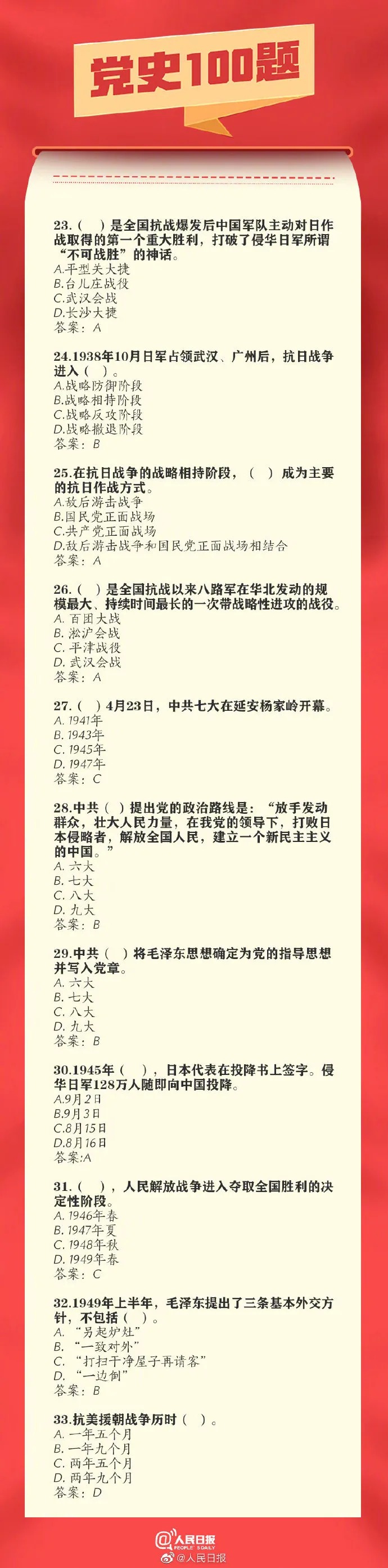 党史100题!收藏!